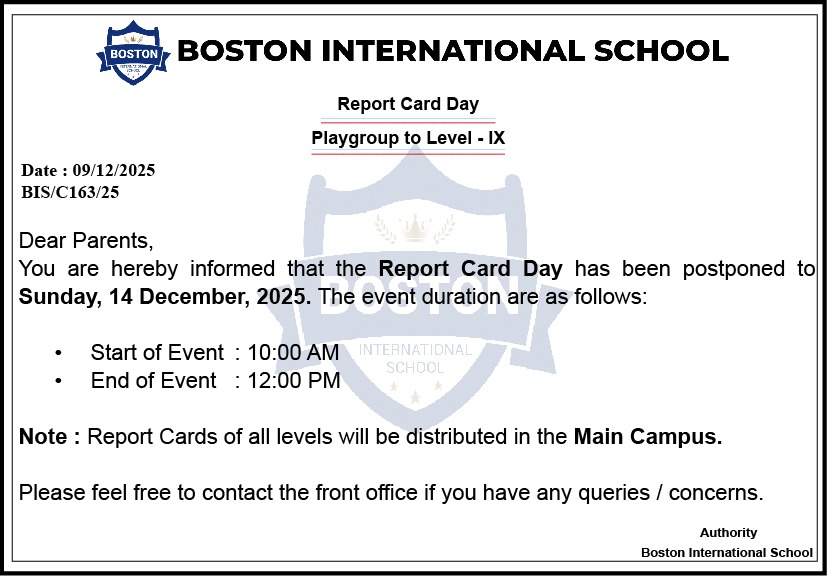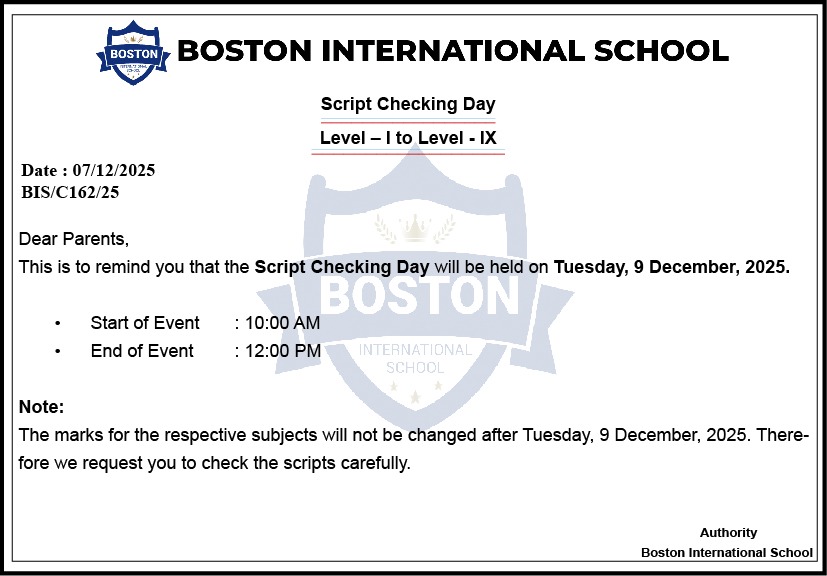 The school will remain closed tomorrow due to unavoidable circumstances and will resume on Sunday, 16 November, 2025. Therefore, we have decided that the revision content of Thursday, 13 November, 2025 is to be done as homework.