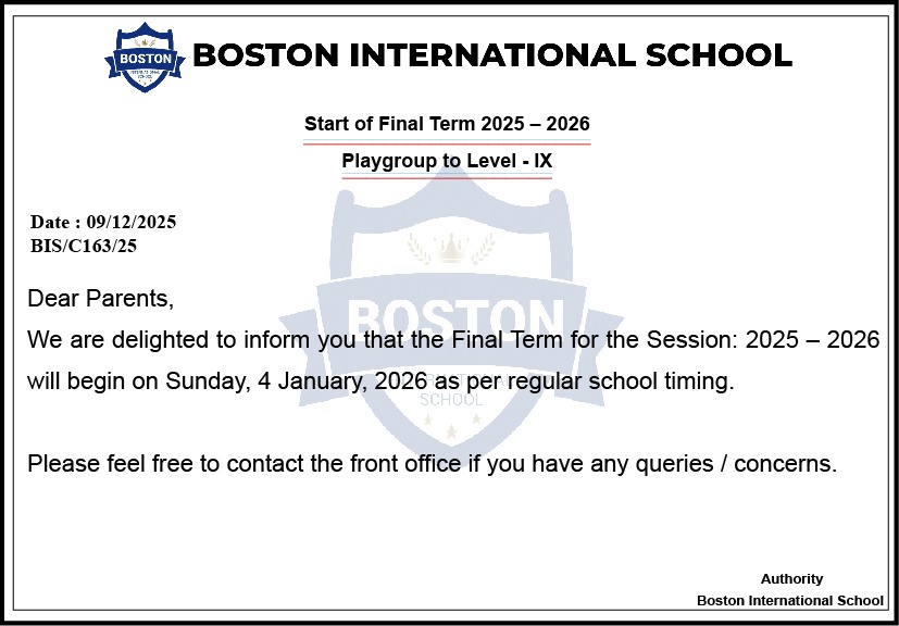 Start of Final Term 2025-2026 (Playgroup to Level - IX)