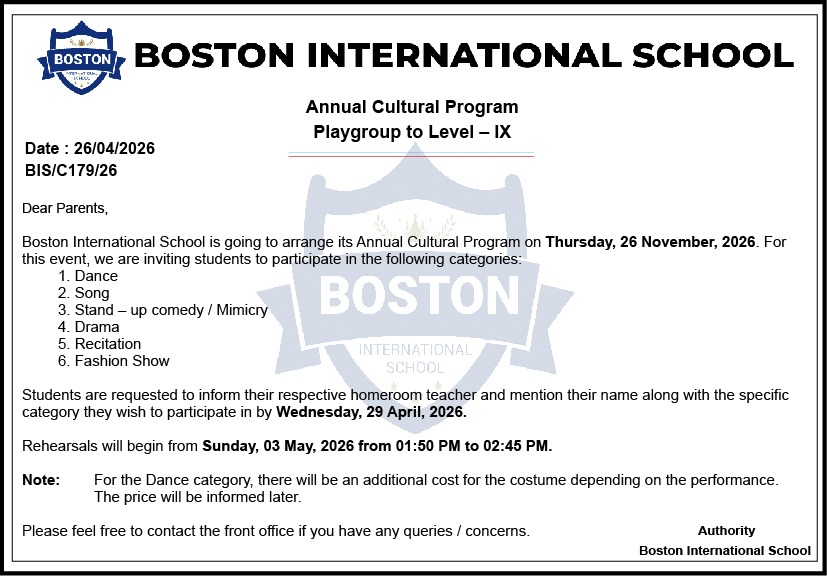 Due to severe winter conditions, the management has decided to delay the school reopening and therefore, it will reopen on Sunday, 11 January, 2026 as per regular school timing.